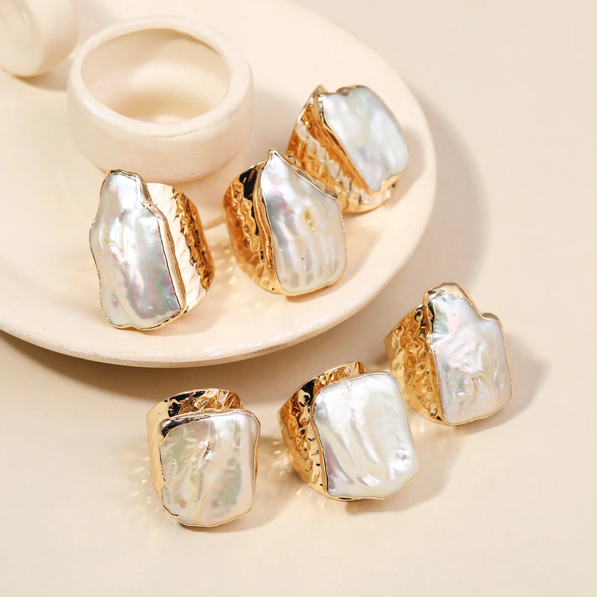 Baroque Gold Color Rings Set