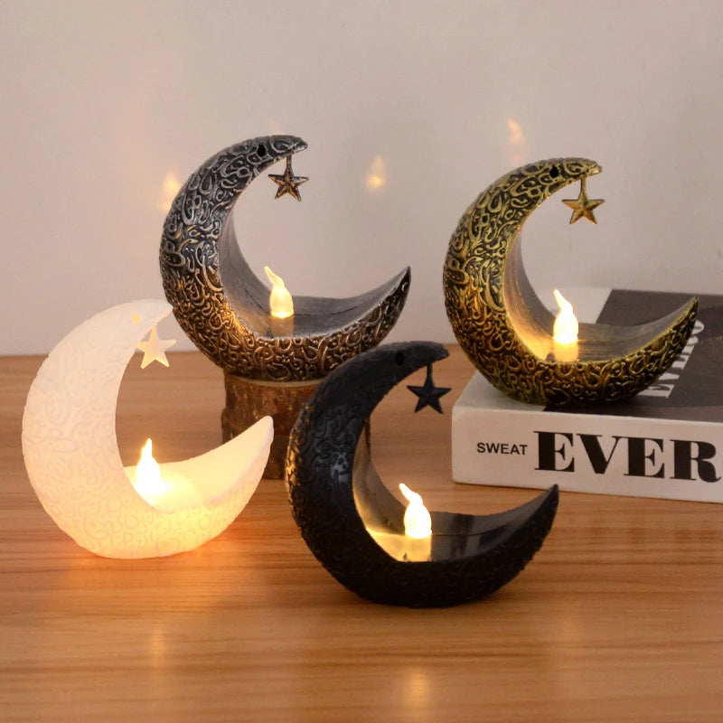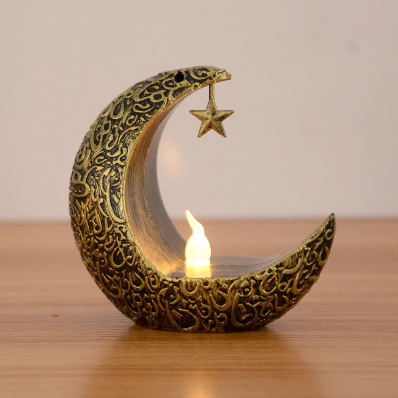 Brighten your Eid celebrations with this charming moon and star–inspired candle light ornament, designed to fill your space with a warm, festive glow. Featuring a classic crescent silhouette paired with twinkling star details, this decorative piece instantly creates a joyful and welcoming atmosphere for Ramadan evenings, Eid gatherings, or special festival moments. Its soft candle-style light adds a magical touch to tables, shelves, and party displays, making every corner feel celebratory and serene.