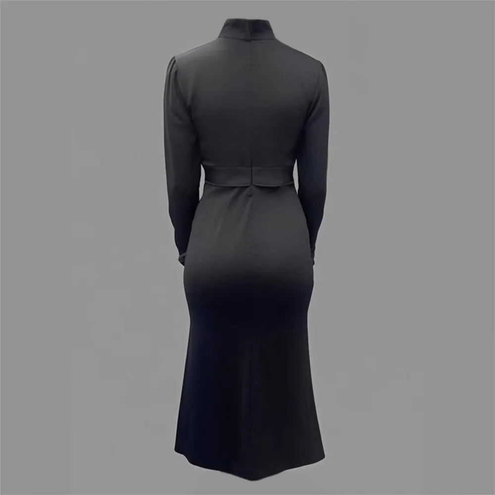 Step into autumn with confidence and sophistication in the Owner Girl V-Neck Pencil Dress, a sleek ankle-length design crafted for the modern, style-conscious woman. The slim-fit silhouette hugs your curves beautifully, while the V-neckline adds a touch of elegance and refinement. Featuring full-length sleeves and subtle button details, this dress exudes office-ready polish with a hint of contemporary flair, making it perfect for workdays, business meetings, or formal gatherings.