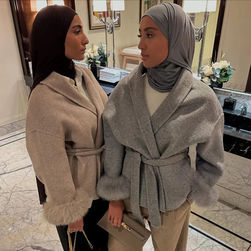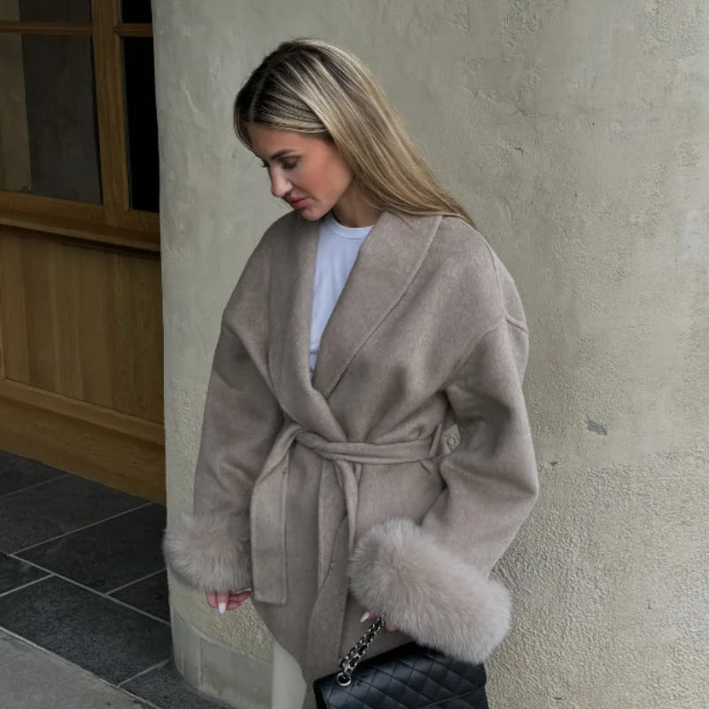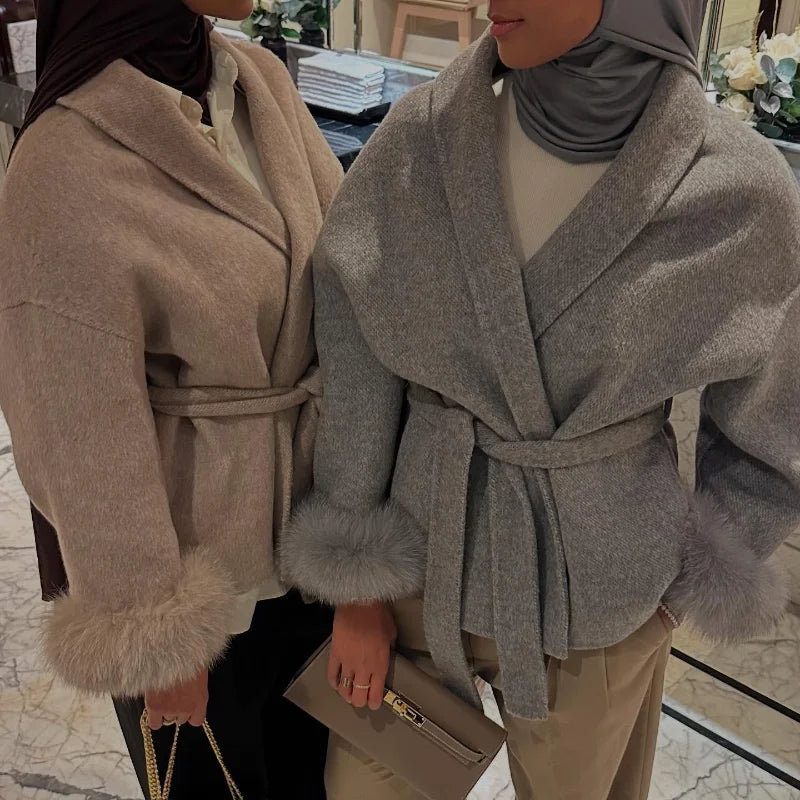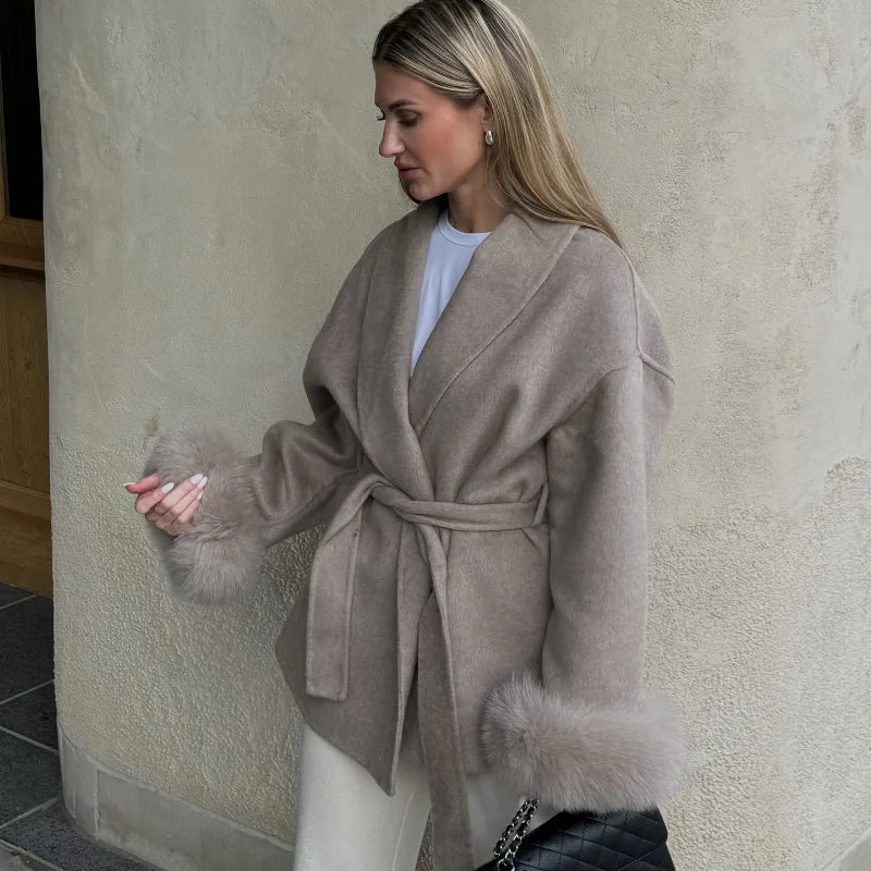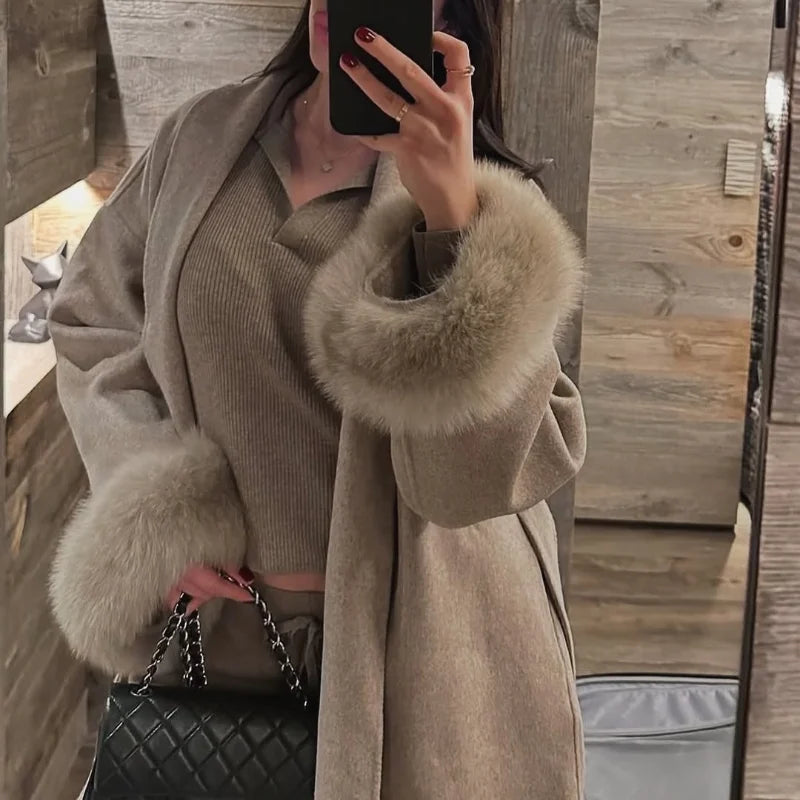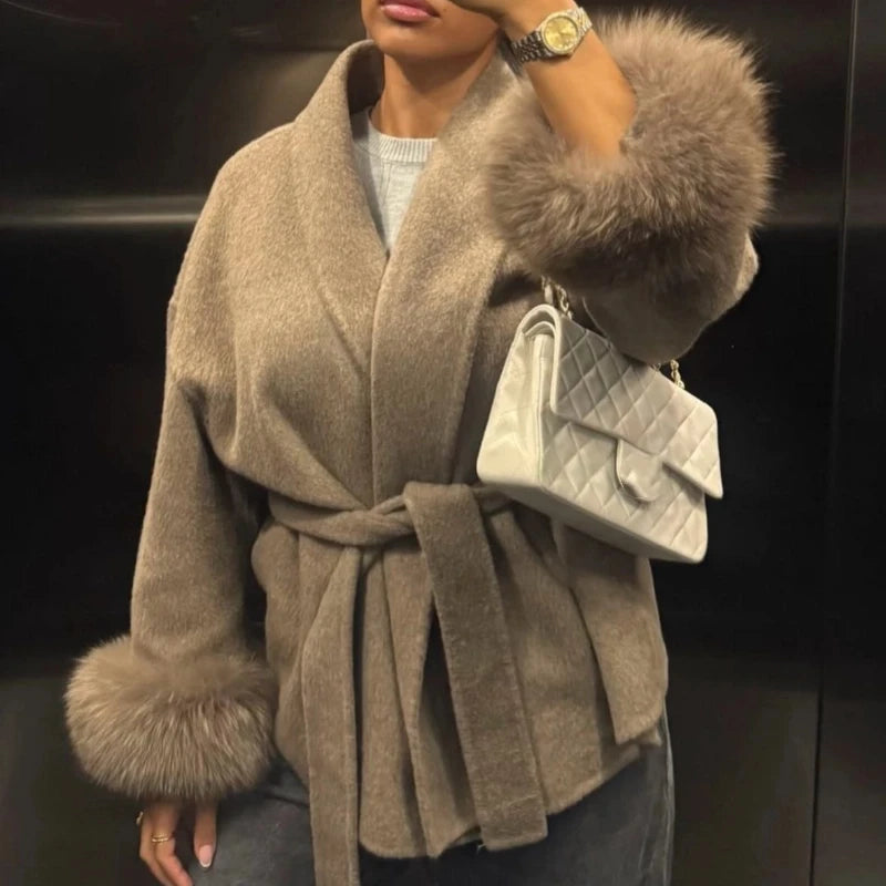 Fur Patchwork Woolen Short Coat
