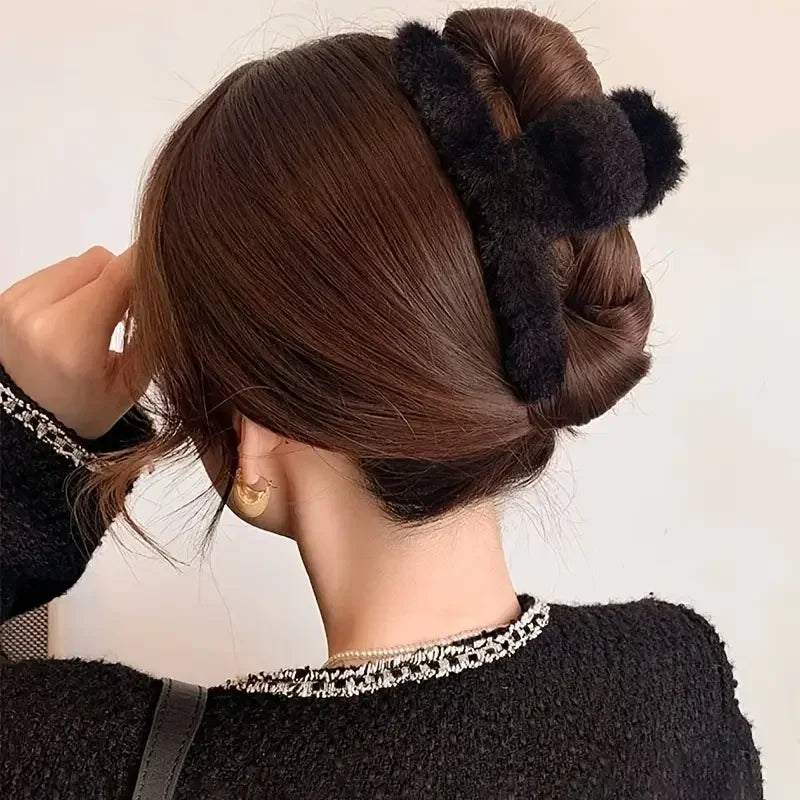 Featuring a large 4.33-inch size, these plush hair clips add an elegant touch to any hairstyle, perfect for everyday outings.