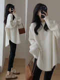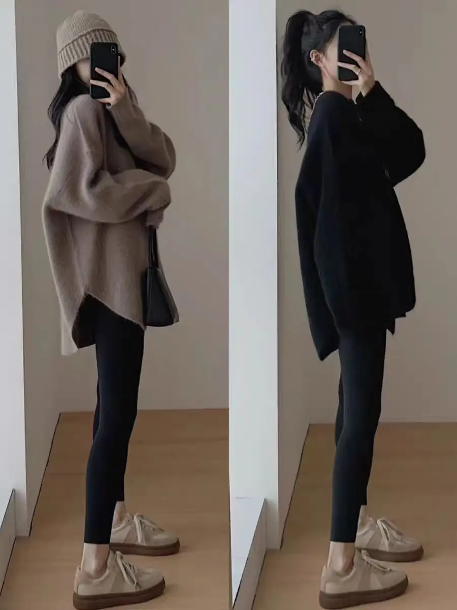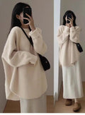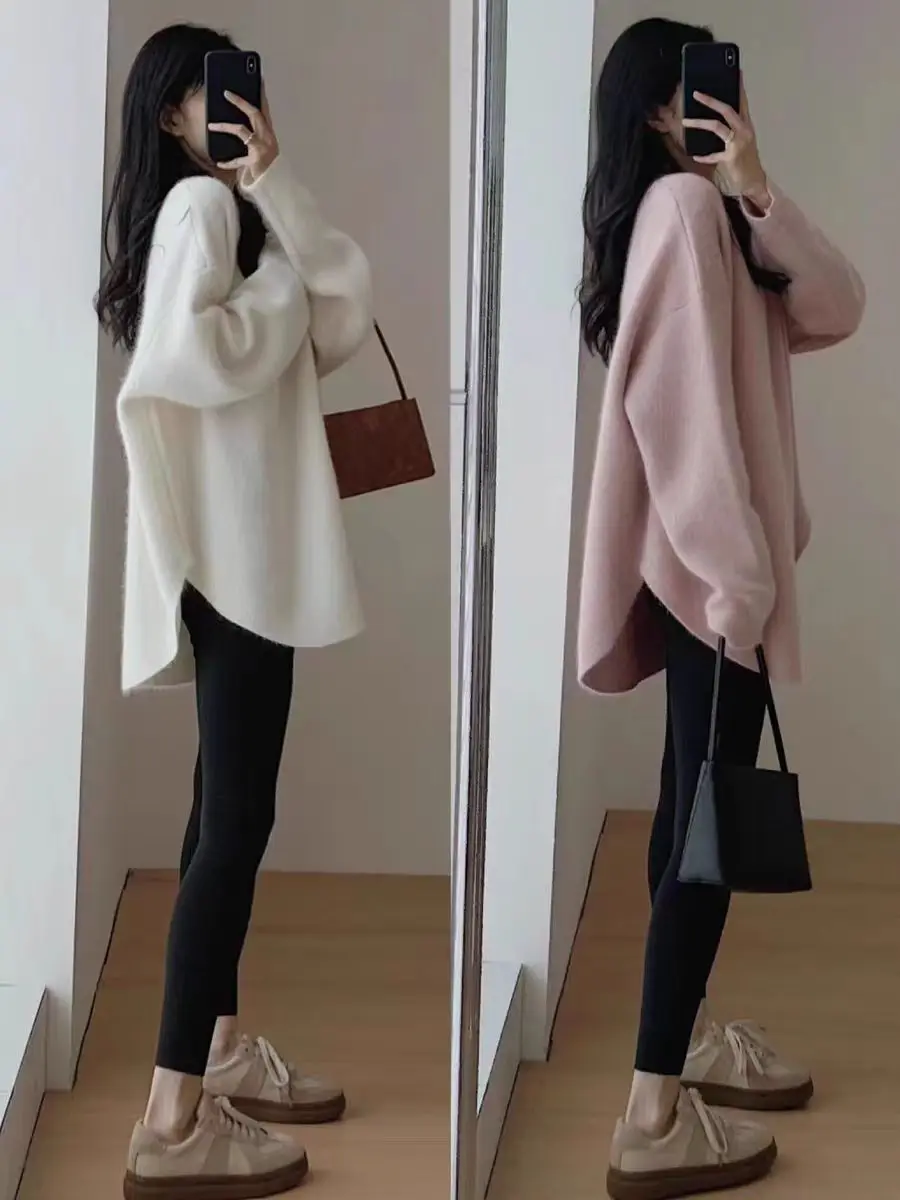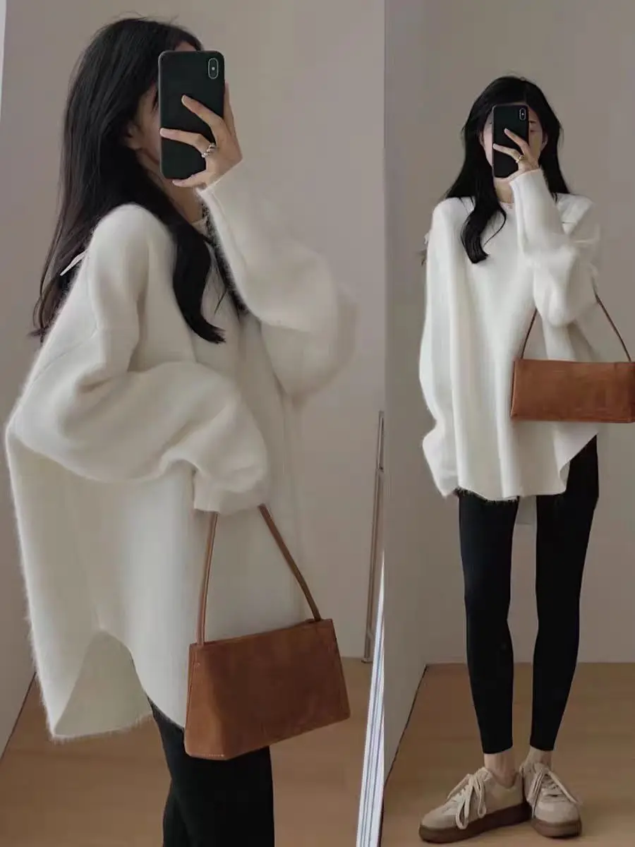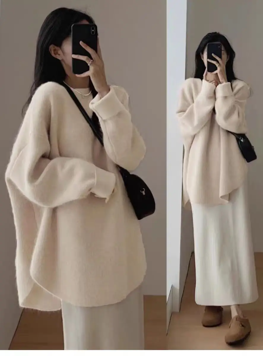Wrap yourself in luxurious warmth with this long cashmere knit pullover, designed for women who love effortless comfort with a refined, relaxed style. Featuring a classic round neckline and a loose, flowing silhouette, this sweater drapes beautifully over the body for a cozy yet elegant look. The thick, heavyweight knit provides exceptional warmth, making it an ideal choice for crisp autumn days and cold winter evenings.