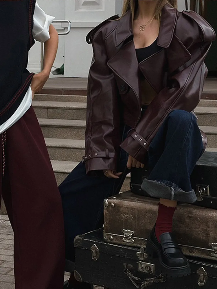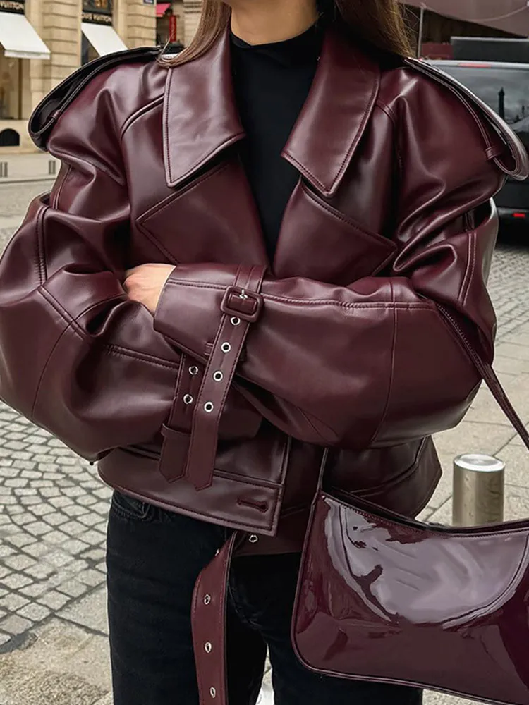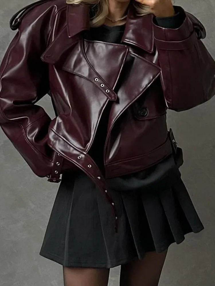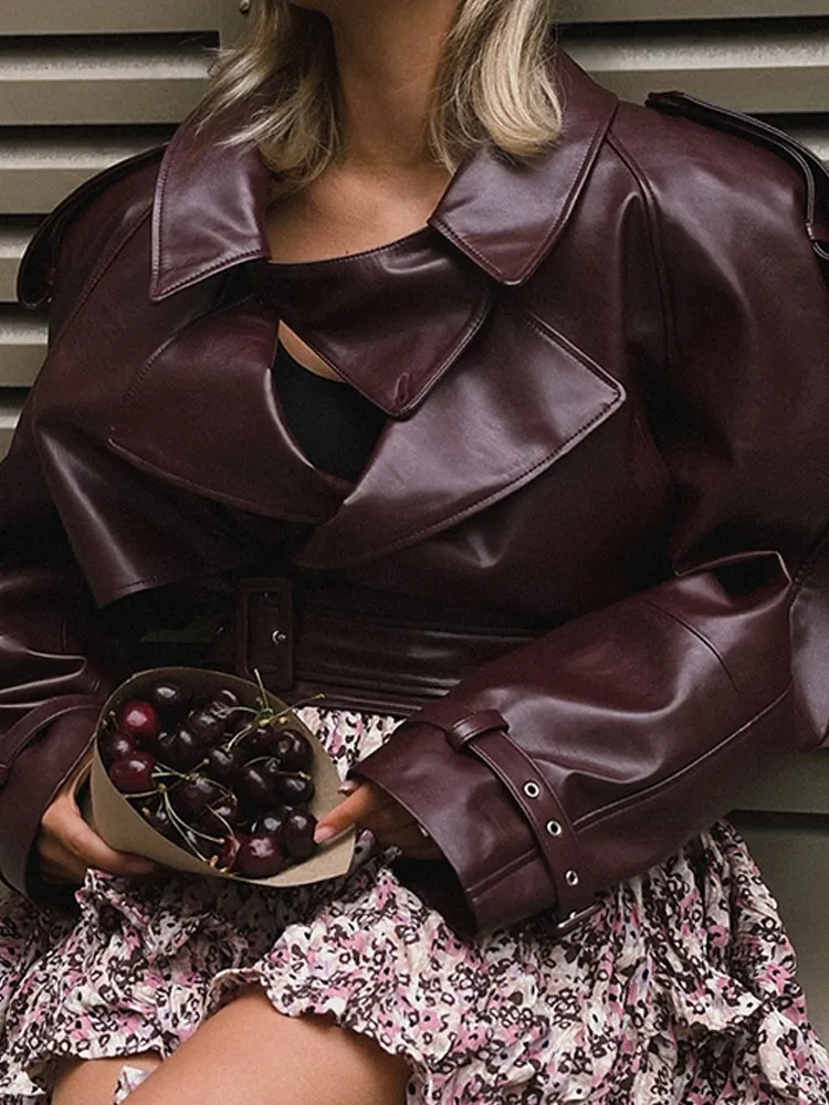Urban Chic Burgundy Leather Coat
